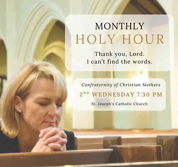 Our monthly Holy Hour on the second Wednesday, at Saint Joseph, beginning at 7:30 pm, is a wonderful way to pray for ourselves and our children! Deacon Rob Lanciotti will be leading it this month and giving a special talk afterward that you won’t want to miss! Please plan to join us and consider signing up to be a reader or bring food for the meeting via the links below.